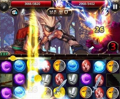 游戏DNF中男鬼剑,女枪,女魔法师为主角的拼图游戏,玩家需要和怪物(AI)进行回合制的对抗,每当凑齐3个一样的图案就可以给与对方伤害,首先将敌人血量打空的一方获胜。