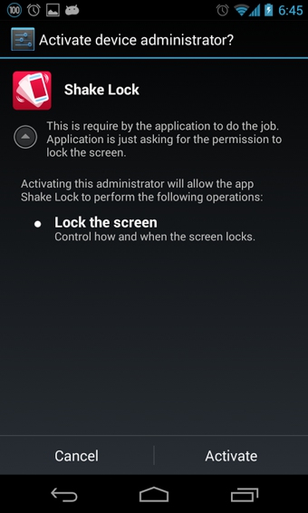 如果你要卸载的应用程序,你需要从应用程序停用防抖锁定。或者你可以从设定中关闭它>安全>设备管理器> ShakeLock(取消选中它),正常卸载它。