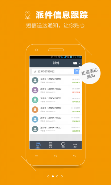 "快递员"为快递业务员提供便捷的免费派送通知、用户寄件消息提醒和快递超派查询服务,提供揽件派件查件的综合解决方案,还提供快递员的专属名片;【软件功能】
