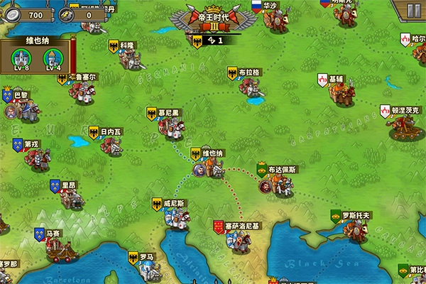 五、征服战术:配备四位具备回复能力的将领(或领先对方几个时代的将领),每位将领负责一路推进。当我方城池数量达到对方约六倍时,直接进攻敌方首都,即可迫使对方投降。