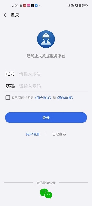 2、若平台支持账号登录,输入账号密码即可完成登录;若没有账号,也可选择微信快捷登录。