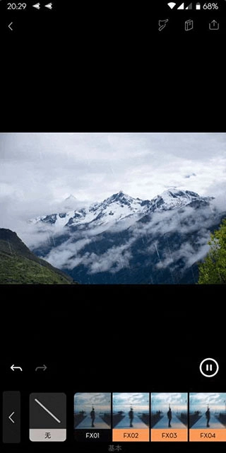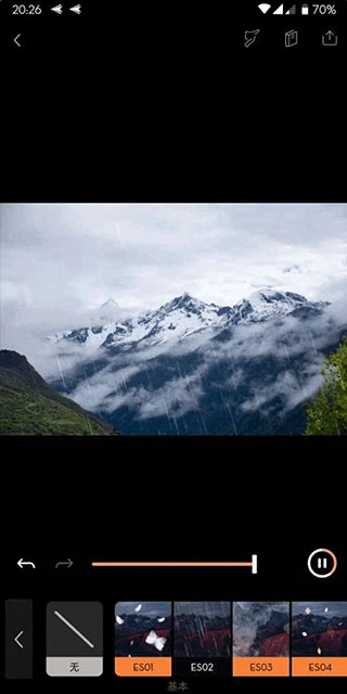 若想增强画面的意境,比如营造“山中细雨,润物无声”的氛围,可在“覆层”选项里选择“细雨”特效,再通过调节强度来把控效果的明显程度,防止过度突出而干扰主体。