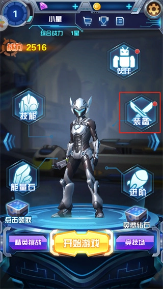 1、双击打开奥特曼钢铁飞龙,点击右边的装备按钮;