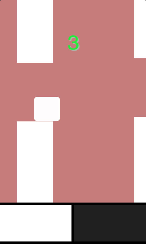 首先声明,不喜欢挑战的玩家可能不会喜欢,你会抓狂。伴随着美妙舒缓的钢琴曲,又一款让你的抓狂的游戏疯狂的黑白块儿即将出现在你的屏幕!当出现白块儿时,玩家需要点击下方的白色条幅,以保持白块儿穿过前方的管道缝隙;当黑块儿出现时,玩家相应的点击下方黑色条幅即可!【有戏特点】