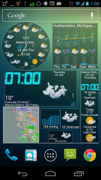 安卓手机天气软件 eWeather HD能够为你的手机提供一个全功能的气象站,可以查看天气、地震、气压计、时钟,内置多达17种插件。【软件特点】