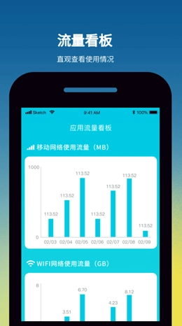 无需连接网络,无网络时仍可进行流量监控。
