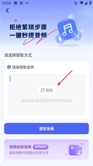 请选用“链接提取音频”的功能,输入需要从中提取音频的视频链接。