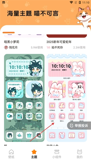 进入主界面后,点击底部的【主题】选项,就能进入主题板块。