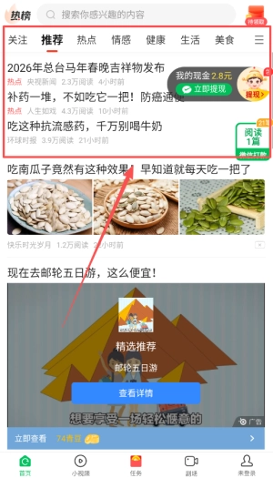 1、首先,打开中青看点App,注册账号后就能开启个性化新闻推送服务,系统会依据用户的兴趣偏好和阅读习惯来推荐相关内容。