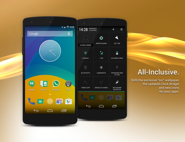 - 随着原子风格上的所有主要应用程序,如Gmail,Chrome浏览器,联系人,电话,彩信,浏览器,阿波罗和CM文件管理器。
