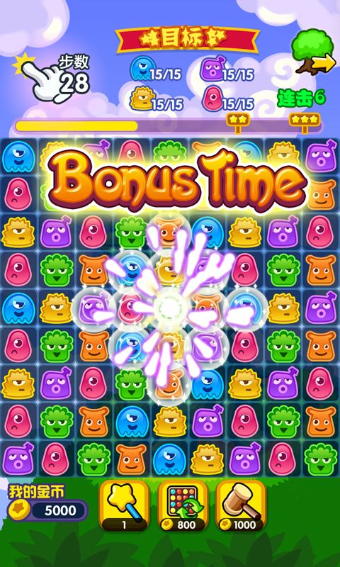 《天天砰砰砰》安卓版手游的玩法也很简单,在游戏中我们ui看到小怪物一样的粉色,蓝色,黄色,绿色,橘黄色等各种颜色的消除怪物。手指点击小怪物,玩法和其他游戏一样,您就能够取得胜利,并且最好取得连击和最短的步数,这样分数和金币能更多些。