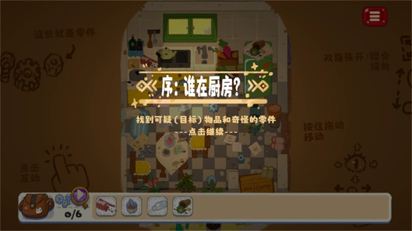 3、主题场景:涵盖森林、厨房、太空站等独具特色的视觉主题关卡,每个关卡的布局各有差异(例如森林关卡要在树木、河流之间搜寻物品,厨房关卡则需开启橱柜、冰箱)。