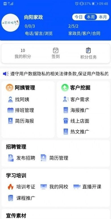 2、支持在线查询阿姨的信用情况及是否为失信被执行人,还能在线管理客户信息,随时跟进客户动态,确保不会遗漏任何订单。