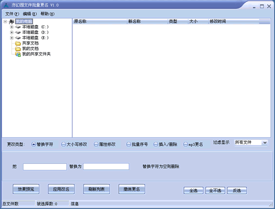 亦幻园文件批量更名 V1.01 绿色免费版 “亦幻园批量更名”是一款功能强大的文件批量改名工具。轻松帮助你完成照片的文件名添加日期、给文件名添加统一的标志、顺序数字命名文件、文件名大小写转换,查找替换特定的字符,根据MP3标签自动命名等多项任务。