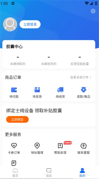 点击页面下方的“我的”按钮,就能登录账户,进而查看订单详情,使用卡券、管理订单和地址等功能。