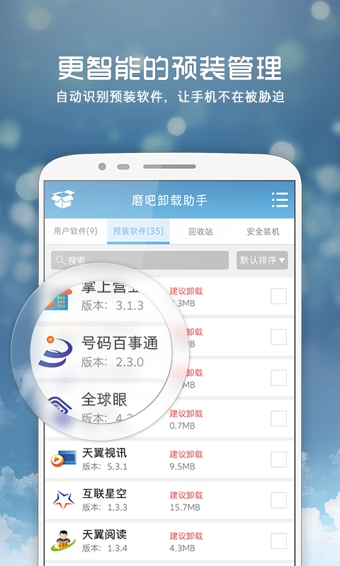 2. 独特的标签归类,强劲的卸载预装,让手机远离捆绑,轻松减负;
