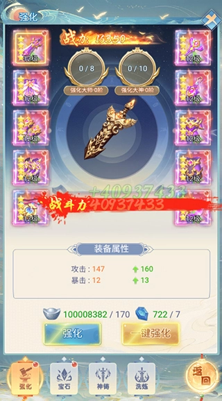 装备算是最容易获取的资源了,只要持续炼器就可以。之后对装备开展强化、镶嵌宝石、洗练这些操作,能显著提升装备的属性。