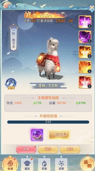 每只坐骑都具备独特的技能,通过提升坐骑等级来解锁并强化这些技能,能够显著增强坐骑的战斗能力。
