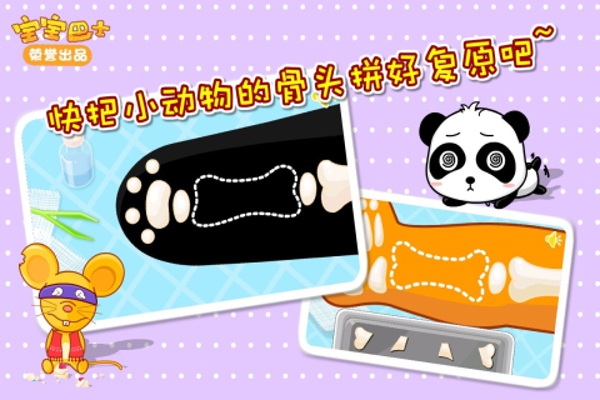 一种小朋友热衷的角色扮演类型。在日常生活中,小朋友常会有一些不规范的行为习惯,例如没洗手就乱抓食物吃导致肚子疼,睡觉踢被子导致着凉感冒,在外走路不注意看路摔倒等等给小朋友造成了不必要的病痛,而这些本都是可以避免的。在这款游戏当中,小朋友跟着长颈鹿医生,选择合适的治疗手段来帮助小动物治病。游戏的同时让孩子们了解了一些基础的医用知识也有助于克服其对医疗的恐惧心理。【更新日志】