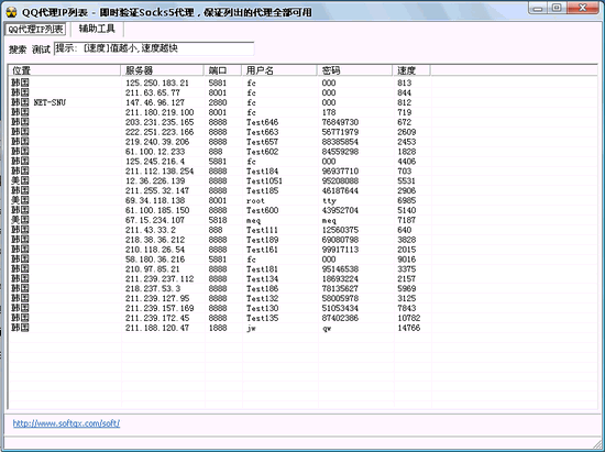 自动公布大量最新可用的QQ Socks5代理IP,程序即时验证代理的可用性,保证列出的代理全部可用