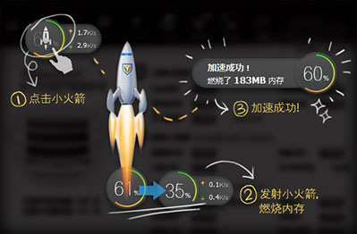点击小火箭,加速成功;发射小火箭,燃烧内存