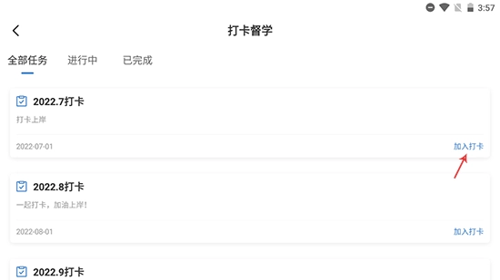 2、从打卡任务列表里挑选合适的学习任务,点击“加入打卡”就能开启每日学习打卡。