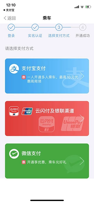 首次使用时,仅需几步就能轻松开通乘车功能,全程无需注册、无需充值。