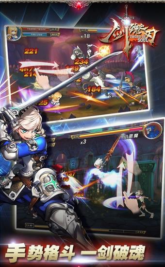 特色一:连击系统《剑魂之刃》区别于其他横版格斗游戏的核心特色在于强调爽快连击的畅快打击感!利用游戏内的超炫特效技能,结合普通攻击,并依托如升龙斩、挑刀等衔接技能组成的连击招式,让操作者体验到的不仅仅是伤害数值的巨大变化,同时还有如同身历其境的感官享受。