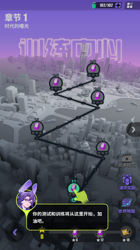5. 挑选关卡发起挑战,每次顺利通关都能获取资源和角色奖励;