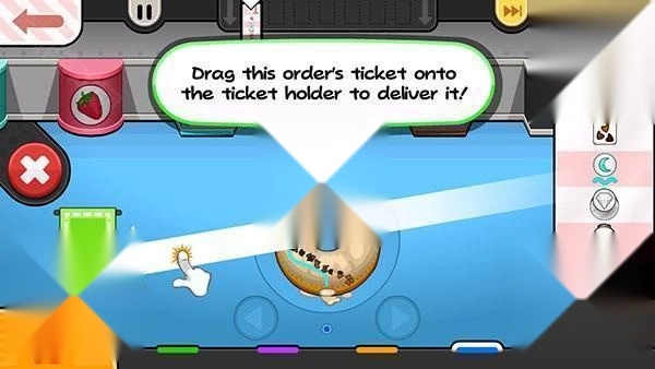6、甜甜圈制作完成后,把订单拖到左边,就能交付给顾客了。