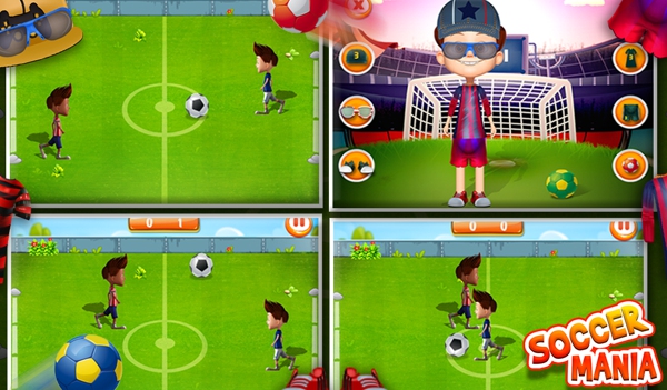 《疯狂的足球 Soccer Mania》是一款足球和换装2合一的游戏。进入游戏后,你可以有两种选择,选择踢球或者为你的球员换上好看的球服。乍一看,画面还挺不错的。进入游戏后发现,这足球,真……好玩。如果你爱心泛滥的话,带着你的孩子一起玩吧~~