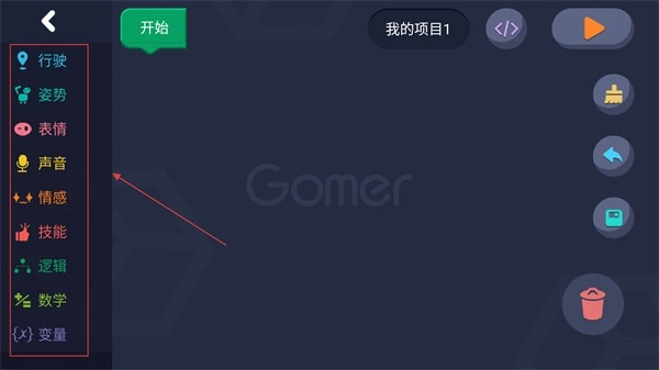 在编程功能选择页面,点击【创建新的项目】选项,即可进入项目编辑页面。