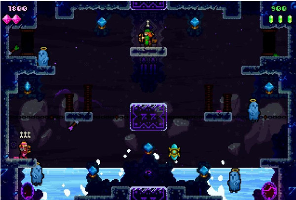 《魔塔大乱斗》游戏中会有很多的敌人来主动攻击你,玩家可以通过箭矢或者直接踩在敌人的头上来消灭他们。由于能使用的箭矢有限,玩家需要不停的捡拾射出掉落后的箭矢来补充,还可以取得宝箱来获得各种辅助道具。【游戏特点】