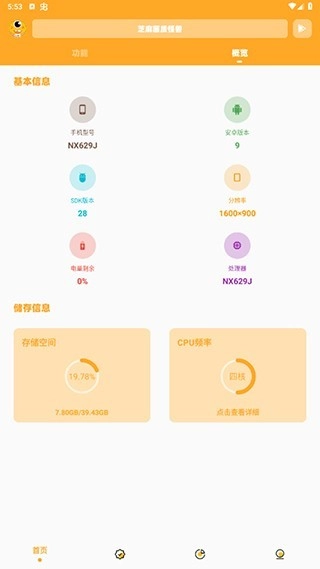 进入概览界面后,能查看当前手机的设备型号、系统版本、屏幕分辨率、内存容量、CPU参数等信息,还可以依据设备的性能表现来挑选适配的画质设置。