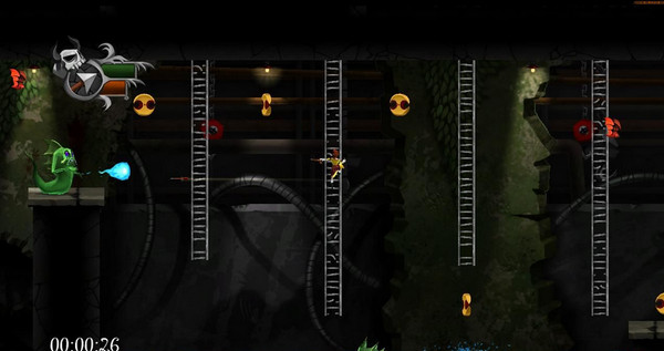 小编玩游戏的时候,经常给蝙蝠骚扰,尤其是跳起来的时候蝙蝠会把你撞下去,掉进下面的毒水中会让你持续少血。游戏中还有消失的地面,玩家要快速通过,但是还要躲避蝙蝠的攻击,否者会掉到水里去。