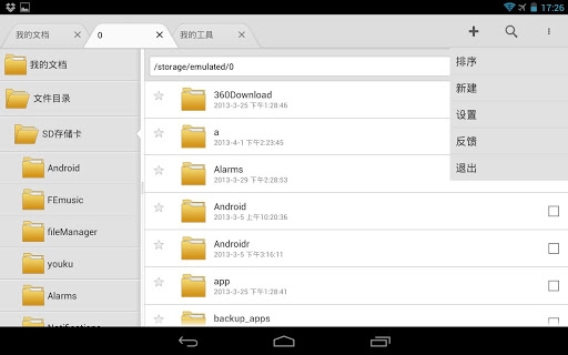 * 强大文件管理器:支持所有基础文件操作如复制,剪切,粘贴,删除,重命名,排序,搜藏夹,隐藏文件,发送,新建,快捷方式,批量操作,隐藏,搜索等