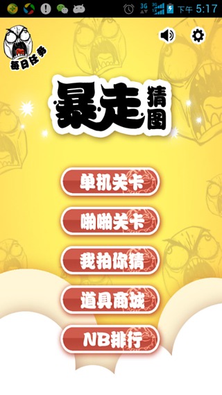 暴走猜图有无数的猜图关卡,现还在疯狂升级中,单机关卡配合玩家出题的啪啪关卡,每天都有新挑战!你也能出题!玩家出题系统横空出世,你可以尽情挥发你的幽默感和创造力!你出的题可以给所有玩家看到,当然也可以指定小伙伴来猜题!