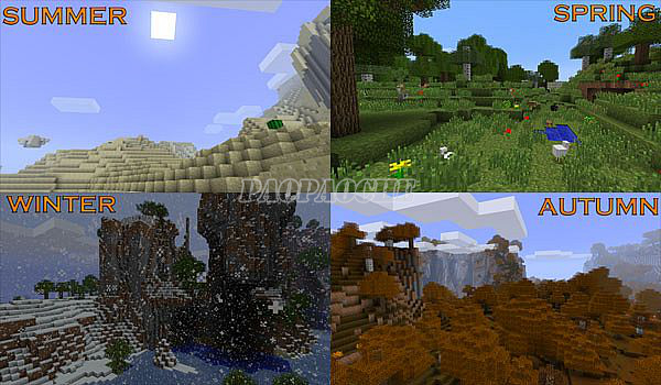我的世界真实季节mod为游戏加入了四季交迭的美景,喜欢真实类mod的玩家不妨在打怪挖地、烧杀抢掠的时候加入这款mod试试。【安装方法】