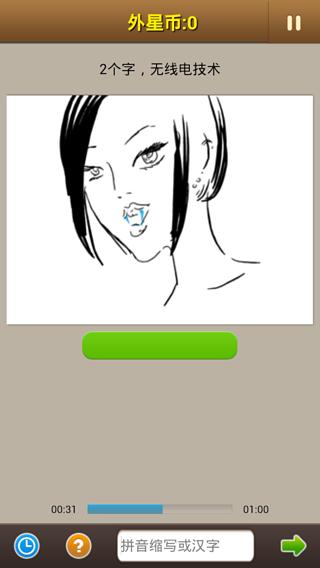 游戏开始默认60秒,玩家根据提示猜图意。可以输入拼音缩写或汉字。比如:龙凤胎,请输入 LFT (不区分大小写)或者龙凤胎。玩家如果觉得60秒时间不够可以加时,但时间越长, 得分越少。