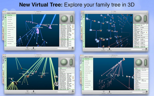 Mac 家谱 7 配有数不尽的功能来记录和可视化您的家族历史 - 使用它们来创建报告、图表或漂亮的 3D 视图(虚拟家谱树功能中)。Mac 家谱提供为您的系谱需求提供合适的解决方案。