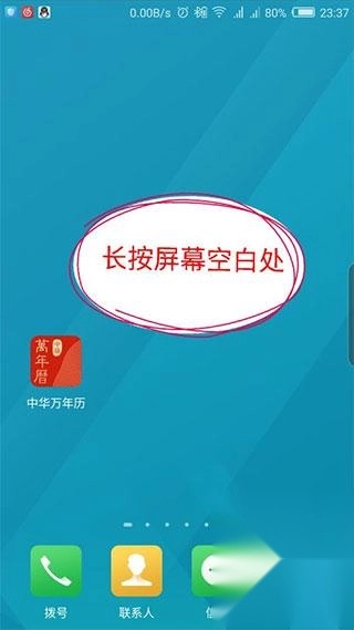 在手机桌面的空白处,长按屏幕;
