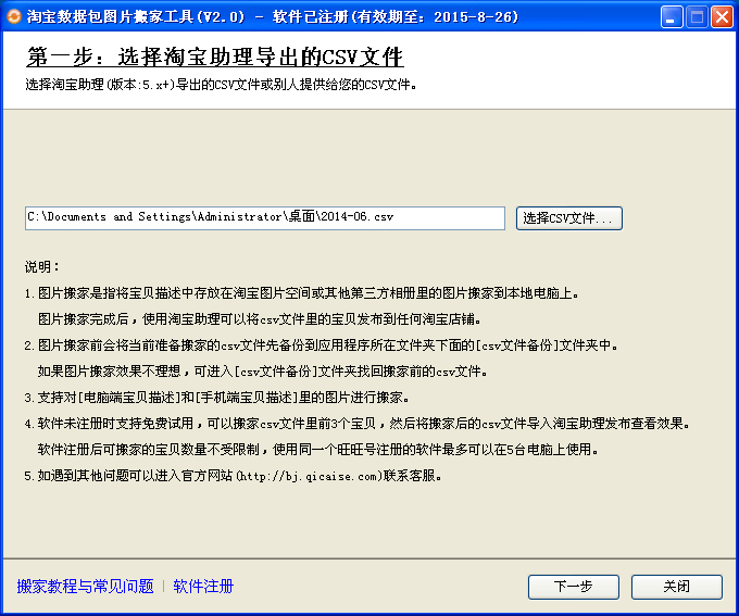 如果csv文件中含有手机端详情,搬家完成后,将csv文件导入到淘宝助理,可能在淘宝助理的手机详情页看不到图片显示。不用担心,只需把宝贝发布到淘宝网后就可以正常的显示了。