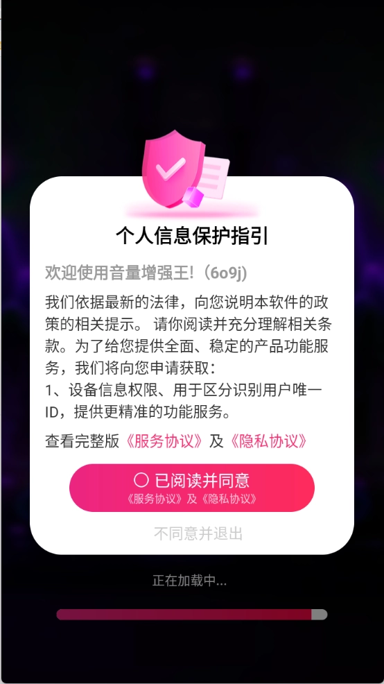 首先在3G游戏网的音量增强王中,查看并同意隐私政策和用户协议。
