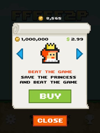 《免费任玩 FFFFF2P》是一款有着经典像素风的动作小游戏,游戏中玩家需要控制一个像素小人避开恶魔释放的方块,并赚取足够的赎金营救公主。不管是画面还是音乐风格都与玛丽奥的很相像,但显然玩法是不一样的。在游戏的过程中,恶魔会不断向像素小人投掷方块,此时玩家要先躲开方块,再跑到方块上踩踏,这样才可粉碎方块,从中获取金币。
