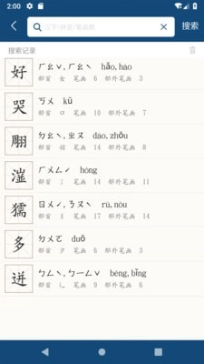 1、查询服务十分全面,用户既能够借助拼音进行搜索,也可以通过部首、偏旁来查找。