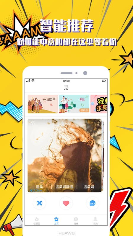 【主页匹配】借助LBS定位技术,结合你的兴趣偏好、过往经历或是希望体验的各类经历(包括情感、生活等方面),你可以通过设置筛选条件来输入个性化需求,实现更精准的匹配。在匹配过程中,你能自主通过左滑、右滑、点击“喜欢”或“无感”等操作做出选择。
