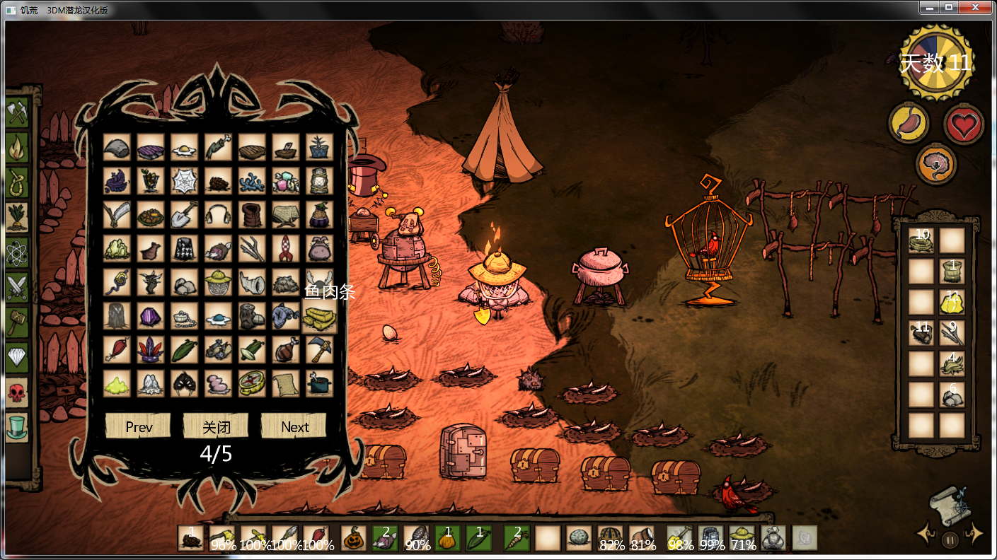 饥荒全物品获得MOD是游戏《饥荒》巨人统治DLC中的一款mod工具,安装了mod之后在游戏中按T键,会出现一个窗口,这个窗口有5页,几乎容纳了所有的游戏物品。