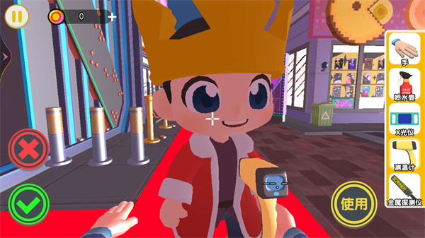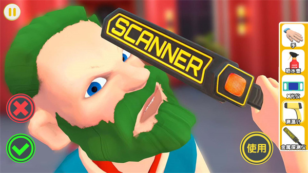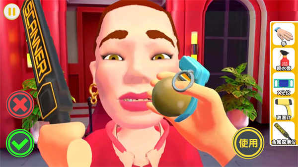 2、点击操作工具进入闯关界面后,屏幕上会呈现喷水壶、X光仪、测温计、金属探测仪的操作流程,需依照这些流程开展检查。