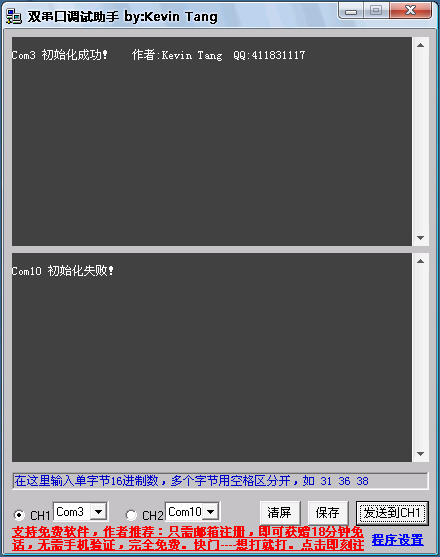 同类软件非常多,但同时调试两个串口的软件没有几个,为方便各界朋友的需要,特编写两个串口进行同时调试的软件,功能强大,用了便知