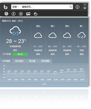 BHOO桌面为您提供实时天气气象信息,及时发布天气预报、台风、暴雨雪等气象信息,为您的生活提供全面精 确的气象服务。
